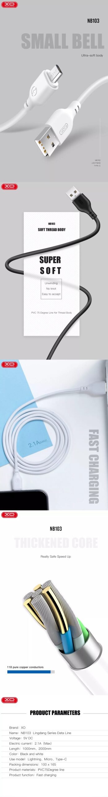 XO NB103 is a cable equipped with an 8-pin connector. The cable has been designed to provide the greatest comfort for everyday use. Made of flexible silicone to ensure the longest possible life.